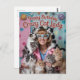 Carte postale rétro vintage drôle de collage pour souhaiter un joyeux anniversaire à une dame folle de chats.