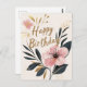 Carte Postale Joyeux Anniversaire Fleur Rose Or