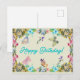 Carte Postale Joyeux Anniversaire Fleurs Aquarelle Vintage