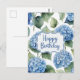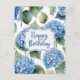 Carte Postale Joyeux Anniversaire Fleurs d'Hortensia Bleu Aquare