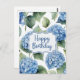 Carte Postale Joyeux Anniversaire Fleurs d'Hydrangea Bleu Aquare