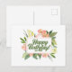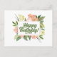Carte Postale Joyeux Anniversaire Fleurs Rose Pastel Aquarelle