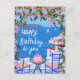 Carte Postale Joyeux Anniversaire Fleurs Terrasse Île grecque