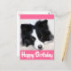 Aww...Qui peut résister au visage mignon d'un chien chiot de Border Collie ? Cette carte postale amusante de Happy Birthday présente le portrait d'un chien endormi en noir et blanc Border Collie, avec une bordure rose vif et un accueil heureux d'anniversaire dans une police blanche et audacieuse. Les cartes postales d'anniversaire sont l'alternative économique aux cartes de voeux coûteuses lorsque vous voulez envoyer une note d'anniversaire rapide.