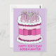 Un grand gâteau d'anniversaire rose et mauve avec les mots "Bonne fille d'anniversaire".