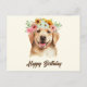 Carte Postale Joyeux Anniversaire Golden Retriever avec des Fleu