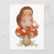 Création de carte postale joyeuse mettant en vedette un hérisson adorable assis sur un champignon fantaisiste, tenant un bouquet de fleurs dans une charmante illustration aquarelle.