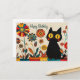 Carte Postale Joyeux Anniversaire Joli Chat Noir avec des Fleurs