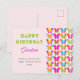 Célébrez l'anniversaire d'une fille spéciale avec ce modèle de carte postale vibrant et joyeux ! Avec un motif papillon arc-en-ciel audacieux dans des teintes de rouge, orange, jaune, vert, bleu et violet, cette carte postale irradie d'énergie et de positivité. Le design est magnifiquement personnalisé avec le nom de la fille qui fête son anniversaire et un message d'anniversaire sincère, ce qui en fait un souvenir unique et attentionné. Fraîche, ludique et inspirée de la nature, cette carte postale est parfaite pour ajouter une touche colorée et personnelle à toute célébration d'anniversaire !