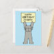 Un grand chat gris bande dessinée se tenant contre un arrière - plan bleu ciel, tenant une pancarte couleur citron qui dit "Joyeux Joseph anniversaire".