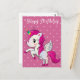 Carte Postale Joyeux anniversaire, licorne et cœurs, personnalis