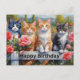 Carte Postale Joyeux Anniversaire Mignons Chats à la Clôture du