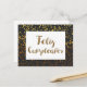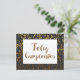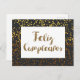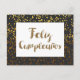 Carte de vœux d'anniversaire espagnole moderne avec un fond de confettis or et noir et Feliz Cumpleanos dans un design pailleté or. Veuillez noter qu'il n'y a pas de véritable paillettes, mais un effet de design pailleté.