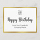 Vous pouvez ajouter votre logo au recto de cette carte postale. Le logo sera au-dessus d'un script qui dit Joyeux Anniversaire. Deux lignes de texte sont en dessous du script pour votre message personnalisé. La carte postale a une bordure en or faux (pas en feuille).