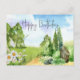 Carte Postale Joyeux Anniversaire Paysage Naturel et Fleurs de M