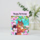 Carte Postale Joyeux Anniversaire Sakura Écureuil dans les Fleur