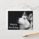 Aww...qui résiste au visage mignon d'un chiot sibérien Husky. Cette carte postale de voeux d'anniversaire heureux présente un chiot sibérien Husky sur un arrière - plan noir de jet.