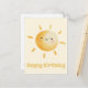 NewParkLane - Carte de joyeux anniversaire personnalisée jaune, avec un dessin animé de soleil souriant aquarelle mignon. Ajoutez votre propre texte au verso pour un design personnalisé. Design mignon pour les enfants !