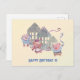 Souhaitez un joyeux anniversaire avec ces Trois Petits Cochons et leurs maisons respectives carte postale d'anniversaire.
