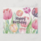 Carte Postale Joyeux Anniversaire Tulipes Aquarelle Floral Abstr