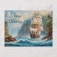 Carte Postale Joyeux Anniversaire Vieux Voilier près de l'Île