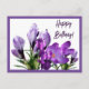 Carte Postale Joyeux Anniversaire violet crocus fleurs boho mign