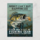 Cette image représente une basse à grande bouche avec sa bouche ouverte, qui semble sur le point de mordre un leurre. C'est une illustration humoristique de la déclaration, L'argent ne peut pas acheter le bonheur, mais il peut acheter beaucoup d'équipement de pêche. L'image est une affiche de motivation populaire pour les amateurs de pêche.