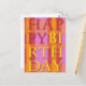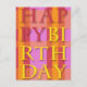 Des rayures vives en rose, orange et jaune font de cette carte postale Joyeuse d'anniversaire un cadeau parfait pour la famille et les amis.