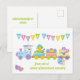 Une carte postale de Pâques Joyeux avec un lapin lapin conduisant un train transportant des oeufs de Pâques, un poussin et un agneau. avec une bannière colorée de Pâques Joyeux Un joli design sucré pour un groupe d'église, crèche, jardin d'enfants ou préscolaire à distribuer aux enfants pour célébrer les fêtes de Pâques. Customisez/personnalisez en ajoutant un message et le nom de votre école, groupe de lecture, crèche, église ou toute autre organisation.