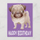 Éclairer la journée spéciale de quelqu'un avec un chiot Carlin ! Cette carte postale canine amusante présente une image de dessin animé d'un mignon chien chiot Carlin avec un message d'anniversaire imprimé dans une police blanche en gras surlignée contre un arrière - plan violet vibrant. Le verso de la carte postale est vide pour votre message. Les cartes postales de chien sont l'alternative économique à une carte de voeux coûteuse lorsque vous voulez envoyer un message d'anniversaire rapide. Les cartes postales d'anniversaire de chien sont parfaites pour... * Usage personnel * secourt de chien / organismes d'adoption * Entreprises - vétérinaires, éleveurs, formateurs * Enceintes de cadeaux avec messages spéciaux