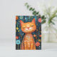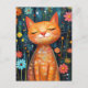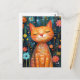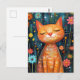 Carte Postale Joyeux Chat Orange Fleurs Whimsical