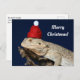 Joyeux dragon à dos de Noël dans une carte postale de chapeau de Père Noël