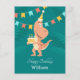 Cette Carte postale Joyeuse d'anniversaire présente une illustration de Dinosaure drôle mignon portant un casquette d'anniversaire et tenant un gâteau avec trois bougies éclairées. Super Carte pour l'anniversaire des enfants ! Vous pouvez facilement personnaliser le texte (salutation et nom) dans la partie inférieure de la carte à l'aide des outils en ligne Zazzle. Si vous avez besoin d'aide pour personnaliser cette carte, n'hésitez pas à me contacter via Zazzle, s'il vous plaît.