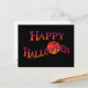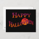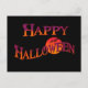 Happy Halloween salutation avec une chauve-souris spectrale volant à travers une pleine Lune d'Octobre.