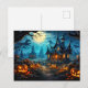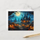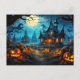 Cette carte postale Happy Halloween illustre une maison hantée après la tombée de la nuit. N'hésitez pas à ajuster toutes les options disponibles comme vous le souhaitez.