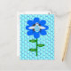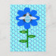 Cette jolie carte postale présente une image graphique d'un mignon bourdon bleu avec des rayures bleues brillantes, des yeux noirs, des antennes bleues et des pattes noires. Il a de jolies ailes bleues et blanches. L'abeille est assise au milieu d'un joli tournesol bleu. La fleur a une tige verte et trois feuilles. Le message "Jour de l'abeille garçon" apparaît étalé sur les trois feuilles. L'arrière-plan est composé d'un motif de nid d'abeille bleu pâle.