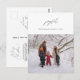 Joie, Joyeuse, Joyeuse Fête, Joyeux Noël. Célébrez la saison avec cette carte postale de photo familiale, dans Moderne doux script romantique thème, minimaliste mise en page des arbres de Noël. Il est entièrement personnalisable et personnalisé avec vos propres messages de salutation. Veuillez ajouter votre adresse de retour pour faciliter l'envoi. Il est simple, facile, mais moderne minimaliste et festif. C'est la carte postale parfaite pour envoyer vos souhaits de vacances.