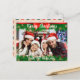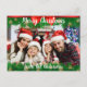 Garland vert avec des flocons d'or et un ruban rouge encadrent le haut et le bas de votre photo de famille. Customisez avec votre nom de famille et votre salutation personnelle au dos.
