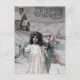 Carte postale vintage de Noël du domaine public. Il présente une fille habillée comme un ange de Noël portant des cadeaux.