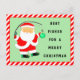 Cartes de vœux créatives de Noël avec le Père Noël pêcheur tenant une canne à pêche avec un ornement sur l'hameçon.