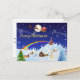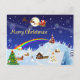 De belles neiges avec des arbres de Noël, des maisons, un bonhomme de neige, une église et un arc-en-ciel avec des flocons de neige qui tombent. Le Père Noël vole au-dessus d'une pleine lune le soir de Noël.