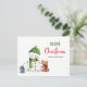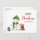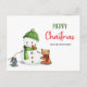 Carte de vœux de Noël mignonne et familiale avec une illustration d'un bonhomme de neige mignon entouré de quelques amis animaux. Personnalisez le texte pour ajouter votre propre message sincère et envoyez-le à vos proches pendant les prochaines fêtes. Illustré et conçu par Patricia Alvarez.