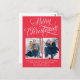 Carte Postale joyeux Noël fun script 2 photos rouge fête