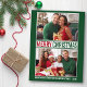 Carte postale moderne Joyeux Noël Famille Photo Vert et Rouge - 2 Photos