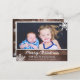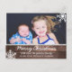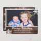 Ajoutez votre photo de famille et votre accueil de vacances à cette jolie carte de poste de Noël en bois rustique et en flocons de neige.