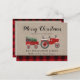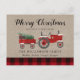 Rustic Joyeux Noël Rouge Plaid Carte de vacances - Souhaitez à votre famille et à vos amis un Joyeux Noël cette saison de vacances avec une touche de rustique, style ferme. Notre carte de Noël de pays unique comprend un tracteur vintage de ferme portant un arbre de Noël frais de la ferme et un cadeau emballé pour les vacances. (Tout le texte est modifiable). Joyeux Noël est dans une jolie police de caractères. La carte est personnalisée avec votre nom de famille et le nom du membre de votre famille. La carte fait partie d'une collection. Montré avec Kraft arrière - plan. La carte est également adaptée aux affaires.