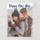 Carte Postale Joyeux Nouvel An Photo Bleu Script moderne Vacance