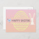 Carte postale Pastel de Pâques avec un oeuf de chevron, un lapin avec de grandes oreilles et de mignons petits oiseaux.