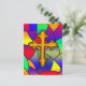 Jolie croix dessinée à la main avec une carte postale arrière - plan de Pâques en vitrail.