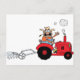 Ce fermier est heureux d'utiliser un tracteur pour compléter ses travaux agricoles.